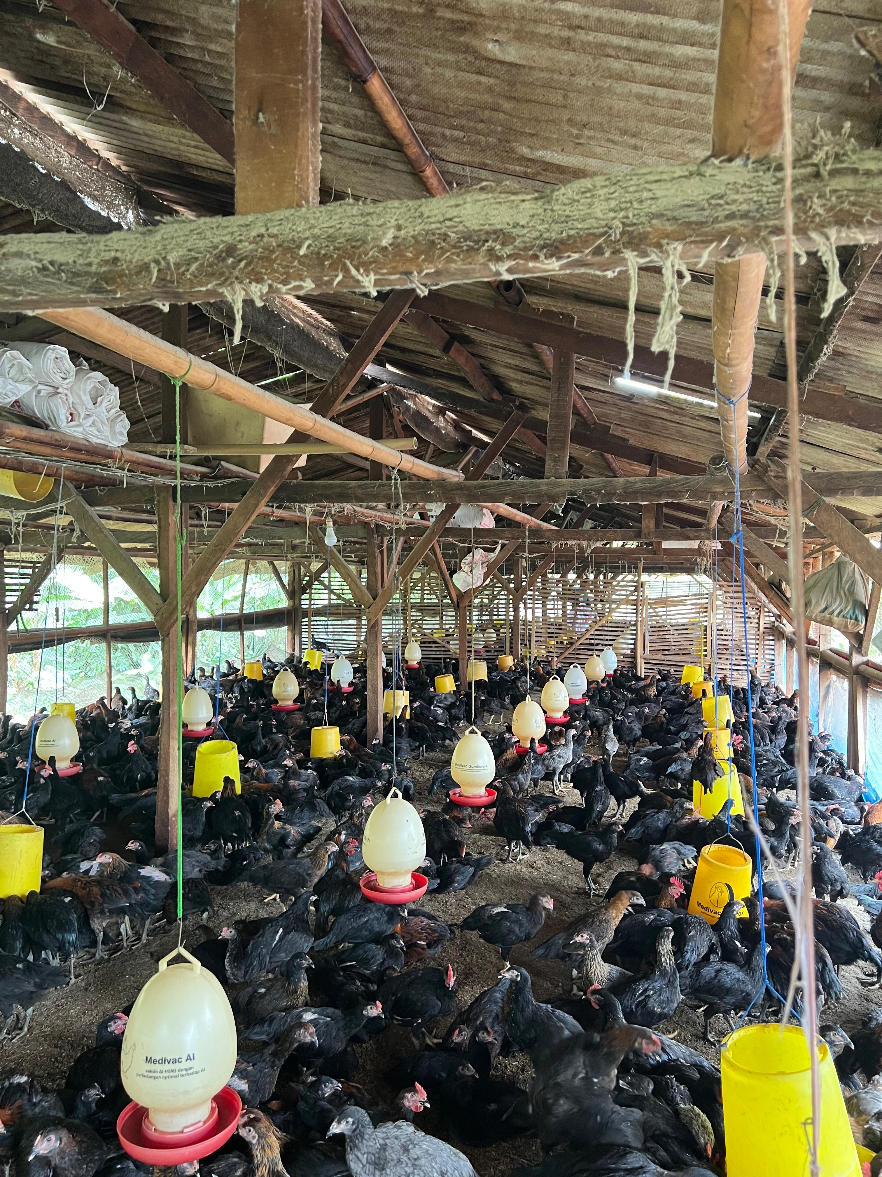 Foto kandang dan ayam kampung sehat di peternakan kami
